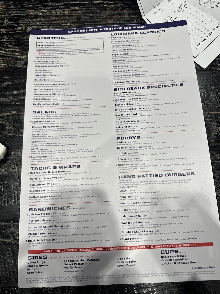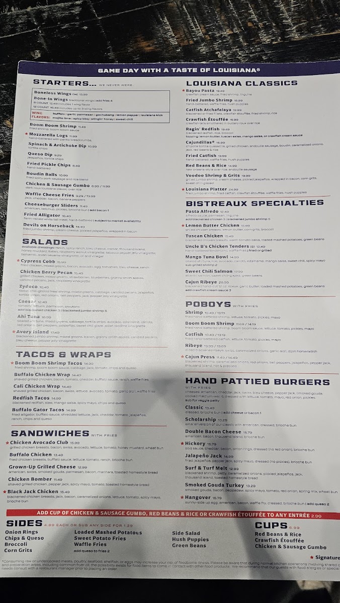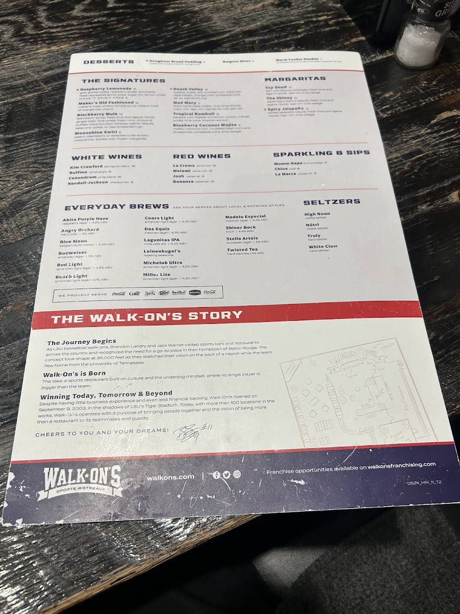 Welcome to the Walk-On's Sports Bistreaux - The Colony Restaurant Menu, located at 5774 Grandscape Blvd, Suite 200, in The Colony, TX. Whether you're stopping by after a busy day or settling in for a game night, this spot offers an unforgettable dining experience. The menu is packed with bold, flavorful dishes designed to please any appetite. From juicy burgers and fresh salads to mouth-watering seafood and signature cocktails, there’s something for everyone.